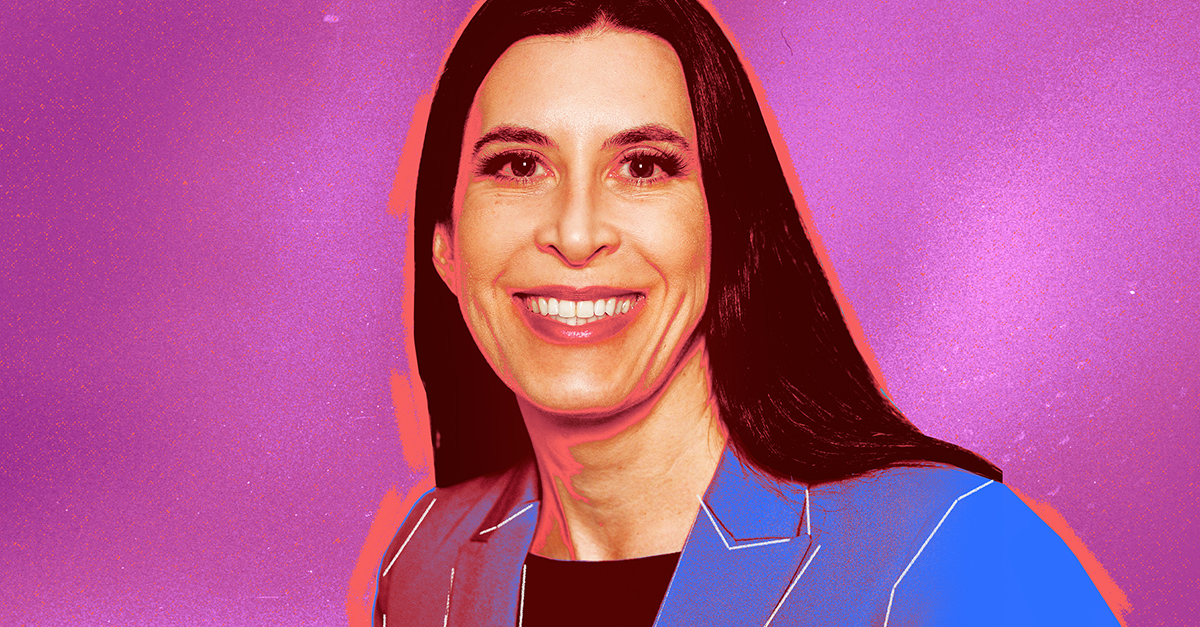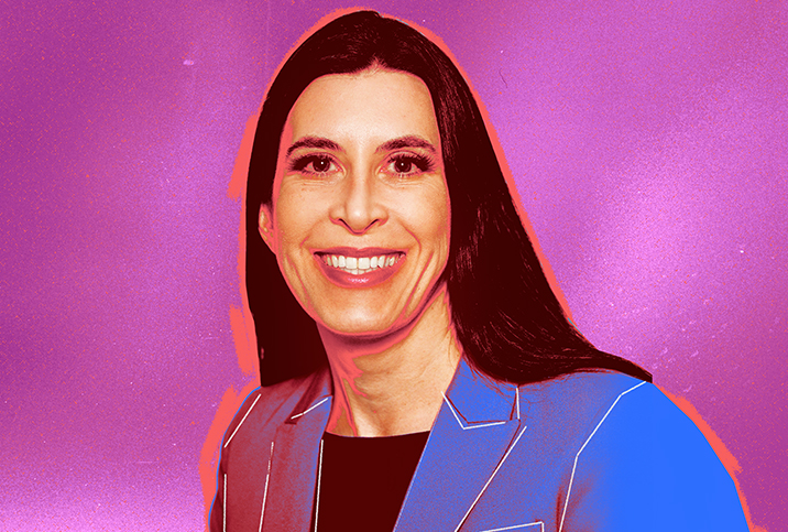 Genevieve Grabman poses in front of a fuchsia background.